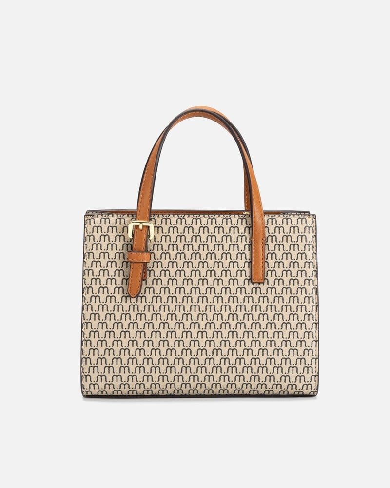 التفاصيل: شنطة من الجلد المنقوش بشعار الماركة بتصميم أنيق