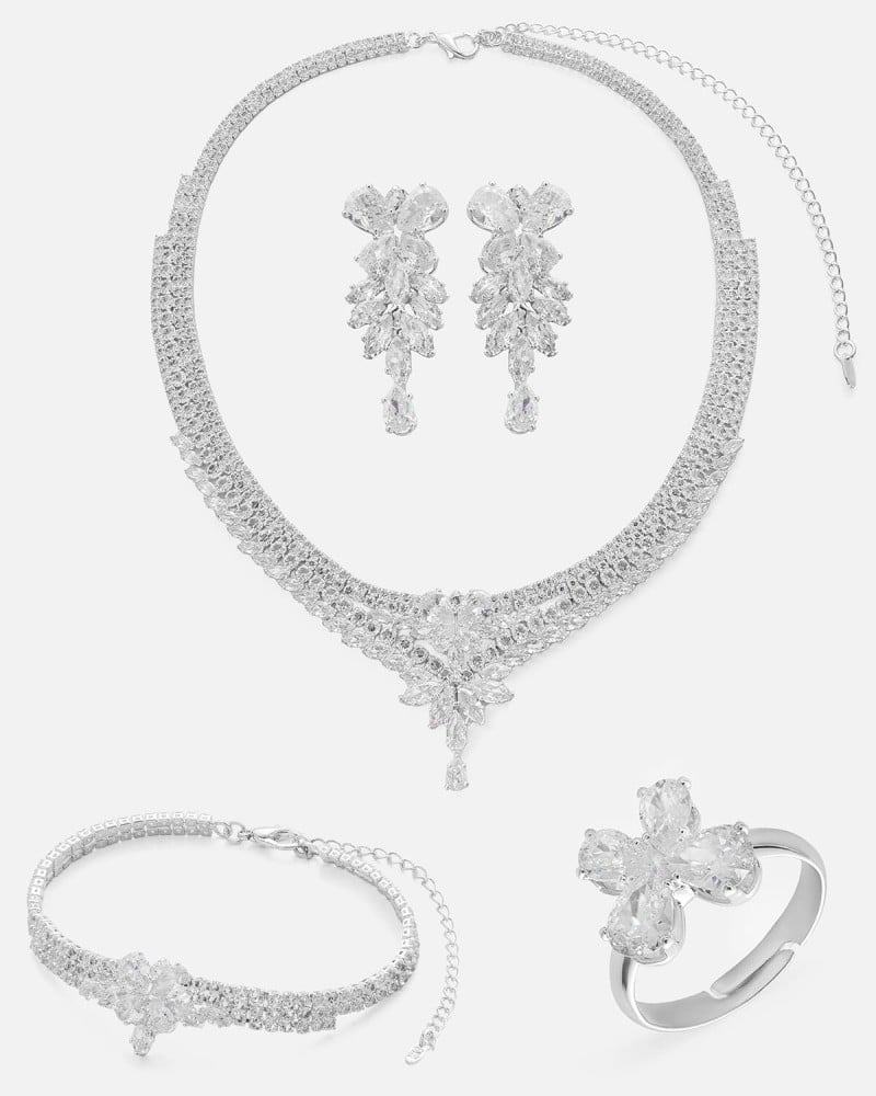 التفاصيل: طقم يتكون من سلسال وحلق وخاتم واسوارة