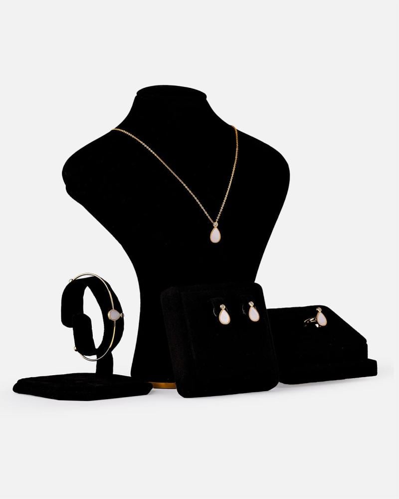 التفاصيل: طقم يتكون من حلق وسلسال و اسوارة وخاتم