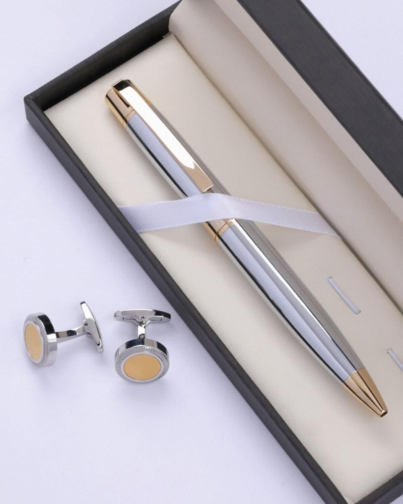 هدايا رجالية اليتير قلم وكبك بلون ذهبي وفضي