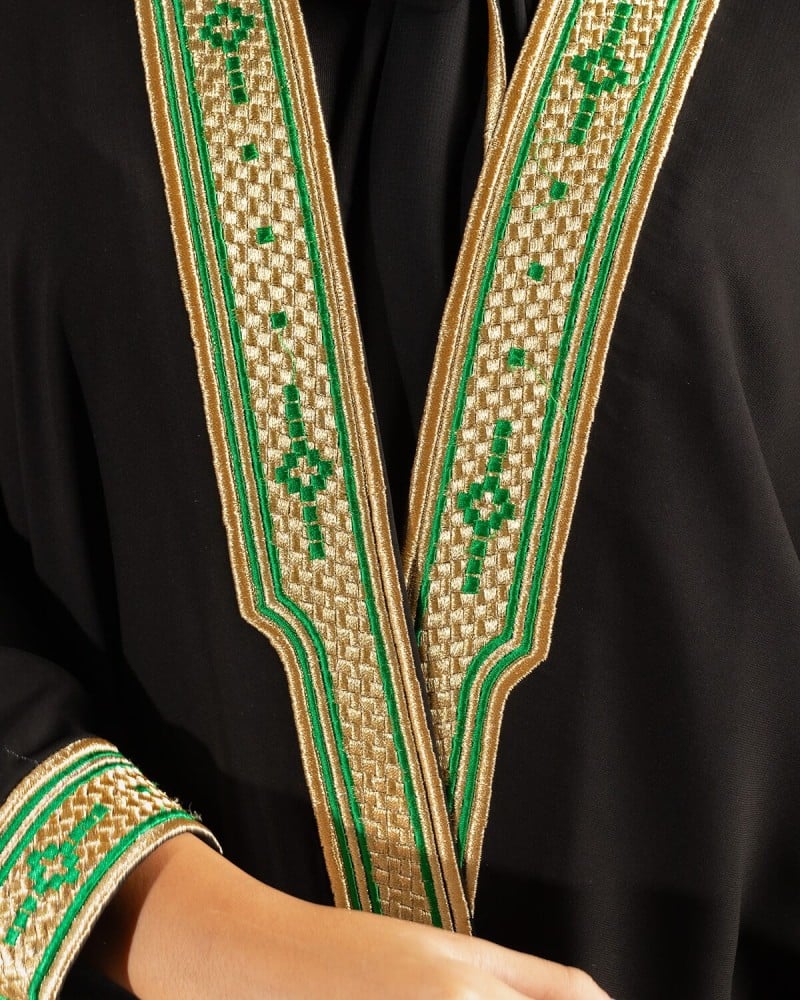 لــون القطعة: أسود بكلفة وتطريز ذهبي