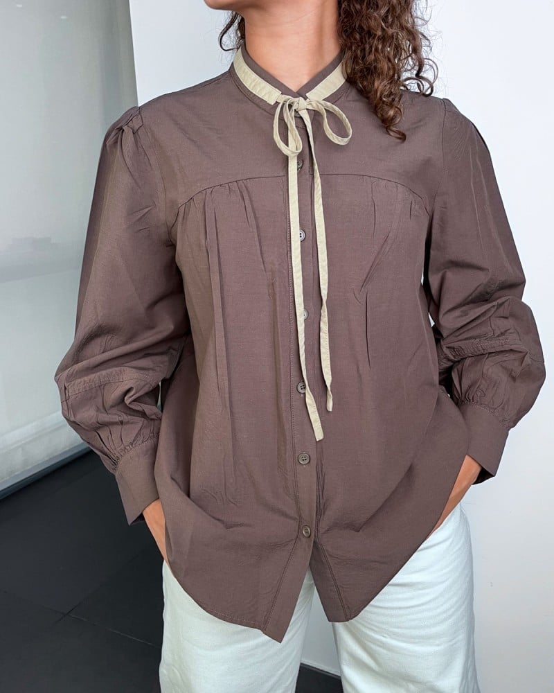 بلوزة نسائية الفي اند كو بتصميم أنيق بلون بني