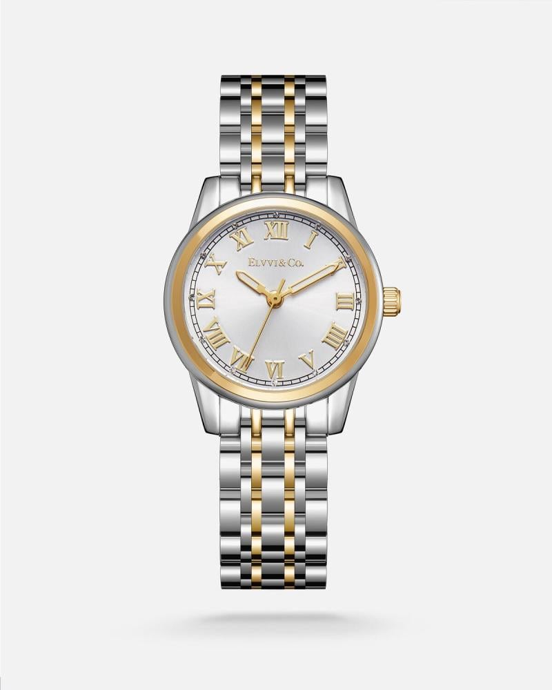 • نـوع سـير الساعة : الستيل باللون الذهبي و الفضي