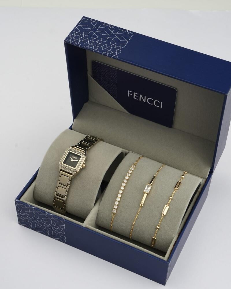 هدية نسائية فينشي ساعة ستيل بلون ذهبي واساور
