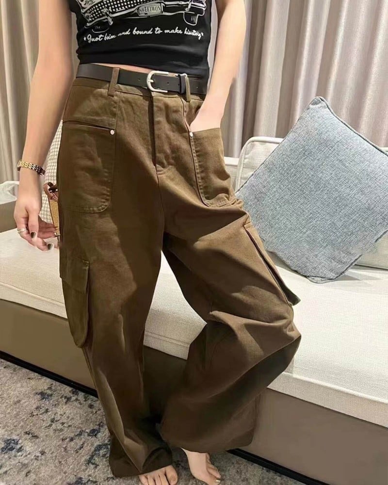 بنطلون نسائي الفي اند كو بتصميم عملي بلون بني