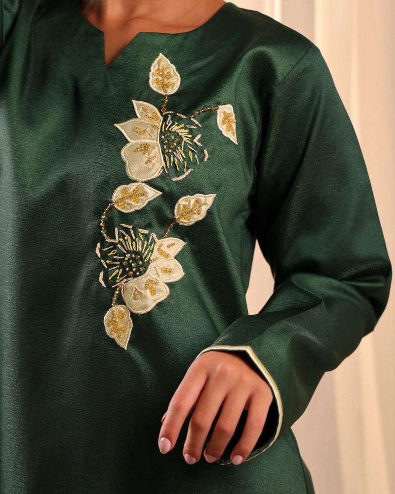 جلابية نسائية آن بتصميم أنيق بلون أخضر